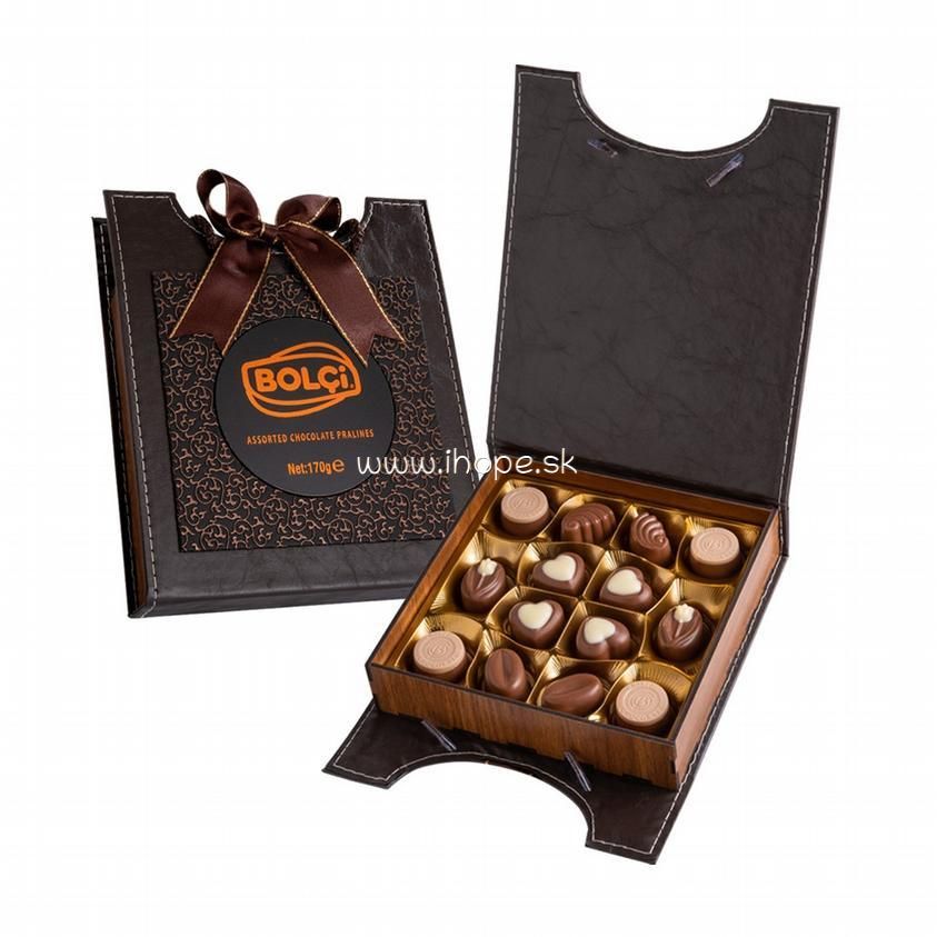 Jemné pralinky v štýlovej darčekovej taške a v elegantnom boxe z kože a dreva od Bolci spájajú lahodnú čokoládu, noblesný vzhľad a luxus, ktorý vždy poteší.