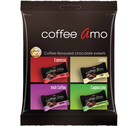 Furé s náplňou s kávovou príchuťou celomáčané v čokoláde, príchute: orechové cappuccino, latté, espresso a írska káva.