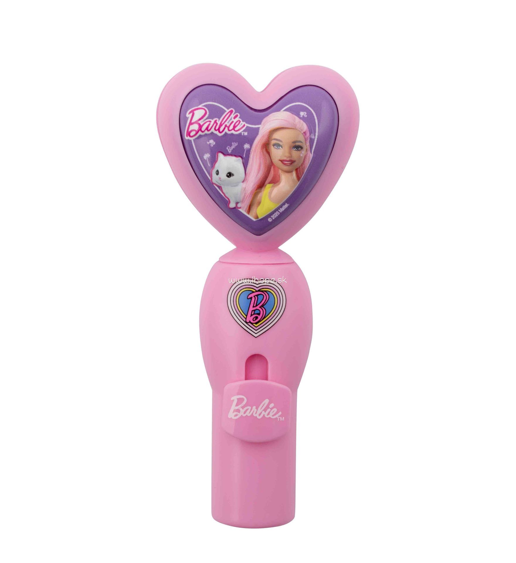 Farebná ovocná lízanka v dizajne Barbie s otočným mechanizmom, ktorá poteší chuť aj zvedavosť detí.