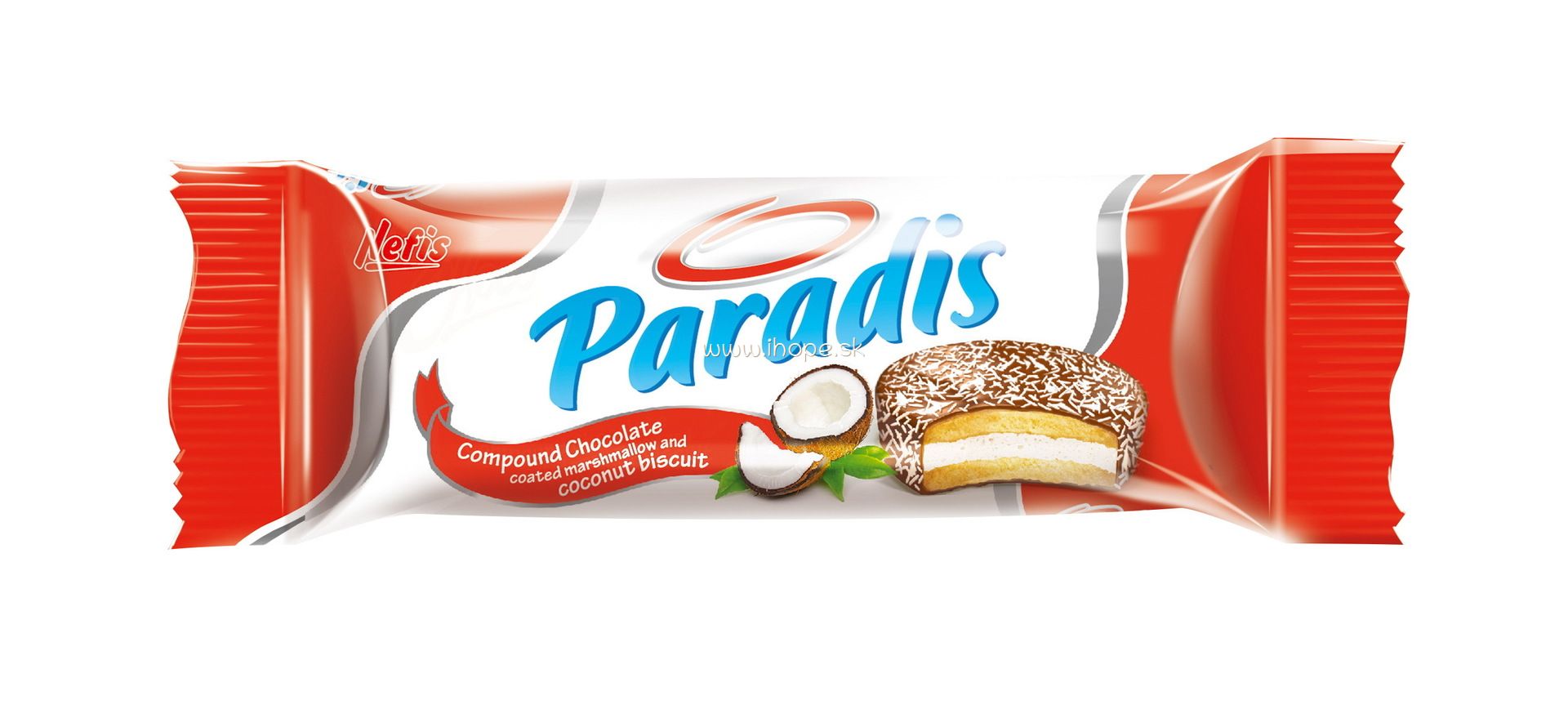 Zloženie: pšeničná múka (lepok), kakaová poleva 31% [cukor, plne stužený rastlinný tuk (palmový), srvátkový prášok (z mlieka), kakaový prášok so zníženým obsahom tuku, kakaová hmota, emulgátory (lecitín (sója)), arómy], cukor, glukózový sirup, kokosové vločky 4%, invertný cukrový sirup, rastlinný slnečnicový olej, rastlinný palmový olej s antioxidantom E319, želatína, jedlá soľ, kypriace látky (uhličitan sodný, uhličitan amónny), regulátor kyslosti (kyselina citrónová), prípravok na ošetrenie múky (disiričitan sodný), arómy, konzervačná látka (sorban draselný).