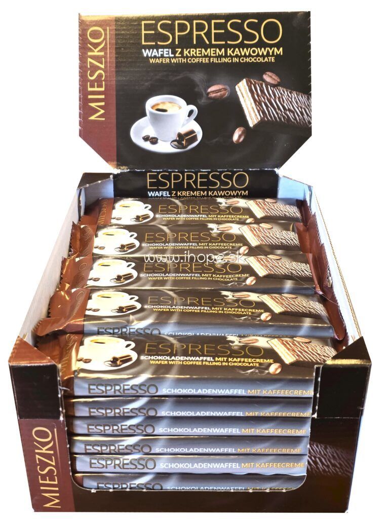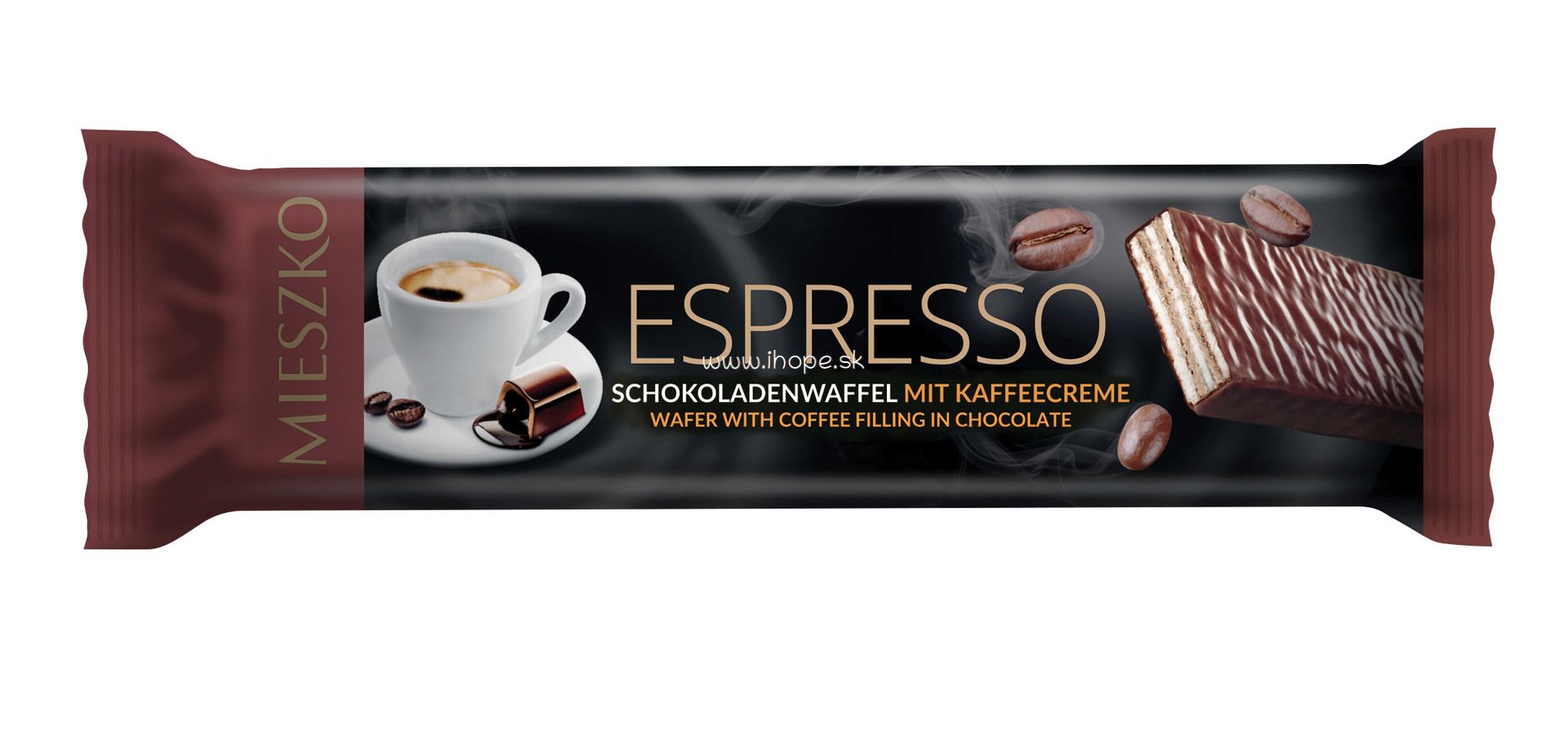 Lahodná oblátka s jemnou kávovou náplňou, celá ponorená do čokolády. Spojenie chrumkavej oblátky a výraznej arómy espressa ponúka dokonalý zážitok pre milovníkov kávy.
