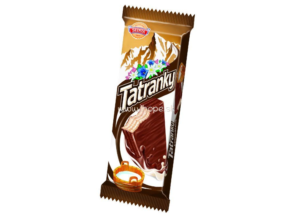 Oblátky s mliečnou krémovou náplňou v mliečno-kakaovej poleve.