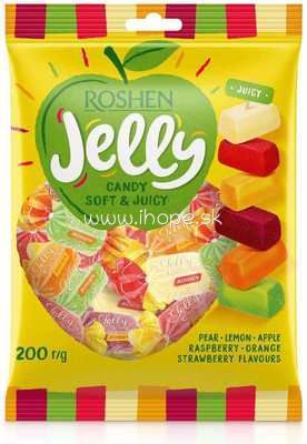 Mäkké a šťavnaté ovocné želé cukríky Roshen Jelly Soft & Juicy. Obsahujú šesť obľúbených príchutí – hruška, jahoda, malina, jablko, citrón a pomaranč.